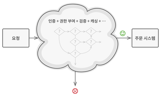 요청은 주문 시스템 자체가 처리할 수 있기 전에 일련의 검사들을 통과해야 합니다.