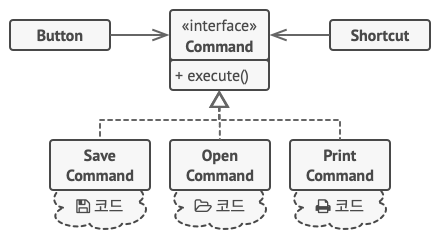 - Command 인터페이스: 실행될 작업을 정의합니다.