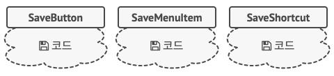 당신의 앱에 처음에 하나의 도구 모음만 있었을 때는 다양한 작업의 구현을 버튼의 자식 클래스들에 배치해도 괜찮았습니다. 즉, CopyButton 자식 클래스의 내부에 텍스트를 복사하는 코드가 있어도 괜찮았습니다. 그러나 복사를 할 수 있도록 하는 콘텍스트 메뉴, 바로 가기 및 기타 항목들을 구현하면 당신은 이제 해당 작업의 코드를 많은 클래스에 복제하거나 버튼에 의존하는 메뉴들을 만들어야 하는데, 이것은 오히려 더 나쁜 옵션입니다.