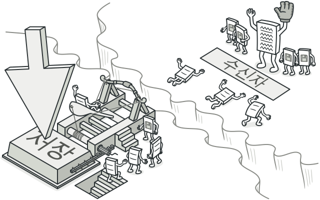 머지않아 당신은 이 접근 방식에 심각한 결함이 있음을 깨닫게 됩니다. 일단, 당신은 이제 엄청난 수의 자식 클래스들이 있으며, 기초 Button 클래스를 수정할 때마다 이러한 자식 클래스의 코드를 깨뜨릴 위험이 있습니다. 간단히 말해서, 그래픽 사용자 인터페이스 코드는 비즈니스 로직의 불안정한 코드에 어색하게 의존하게 되었습니다.