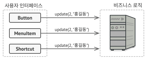 커맨드를 통해 비즈니스 논리 레이어를 접근합니다.