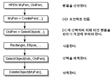 DC는 출력 장치(화면, 프린터, 메모리)를 지정하고, 해당 장치로 그래픽을 그릴 때 사용하는 매개체입니다. - 속성 및 상태 저장