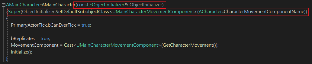 * Character Class생성자에 CustomCharacterMovementComponent인 UMainCharacterMovementComponent를 Default CharacterMovementComponent를 대체하여 생성함