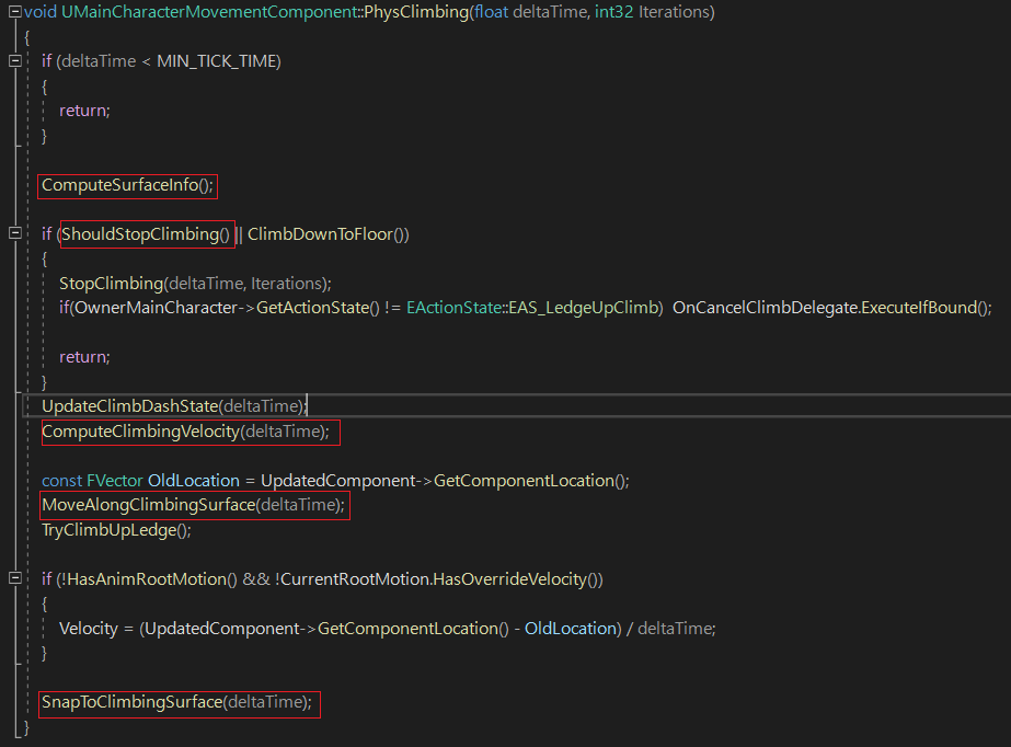 - OnMovementModeChanged함수를 구성했다면 PhysClimbing을 정의해야하는데 여기에 사용될 함수들.