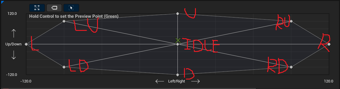 * Asset에 방향별 애니메이션이 잘 구분되어 있어 따로 작업하지 않고 집어 넣기만 하였다. 각 축의 최소값과 최대값이 -120 ~ 120인것은 멤버변수로 MaxClimbingSpeed가 120으로 설정되어 있기때문.