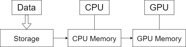 메시 텍스쳐 쉐이더등의 정보는 스토리지에 보관되어 있다가 CPU가 이를 읽어들여 CPU 메모리에 데이터를 올린다. 그 후 CPU메모리에 있는 정보들을 GPU 메모리로 복사한다. 정보들은 GPU 메모리에 있어야 GPU가 사용할 수 있다.
