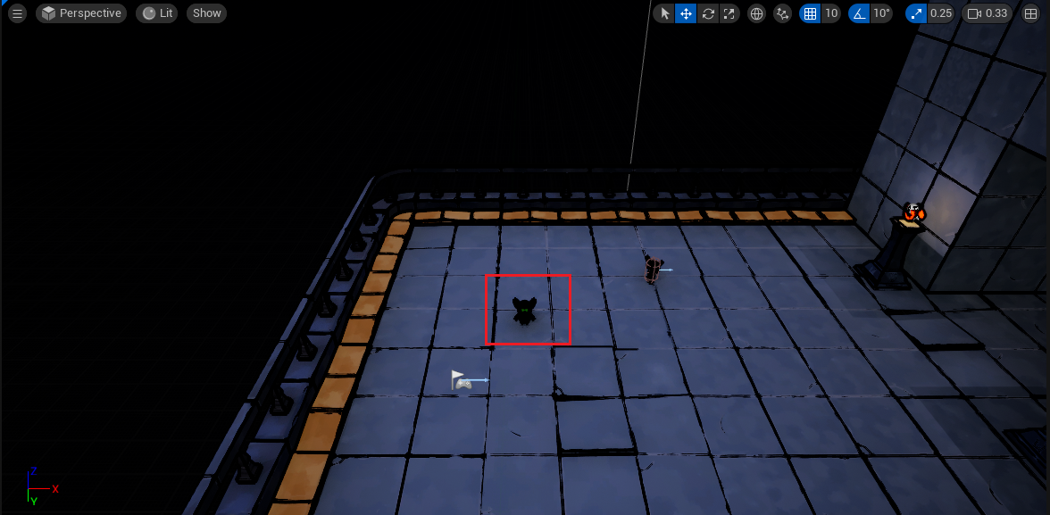 더이상 먼 거리에서 외곽선이 케릭터를 덮지 않는다는 걸 확인할 수 있다.