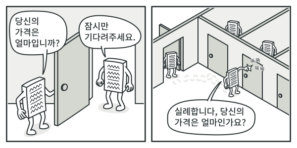 당신은 이 문제에 직접적으로 접근해 볼 수 있습니다: 모든 상자를 푼 후 내부의 모든 제품을 살펴본 다음 가격의 합계를 계산하는 것입니다. 현실 세계에서는 이러한 접근 방법은 가능하나, 프로그램에서 이 작업은 덧셈 루프를 실행하는 것만큼 간단하지 않은데, 그 이유는 덧셈 루프를 실행하기 위해 진행 중인 제품들 및 상자들의 클래스들, 상자의 중첩 수준 및 기타 복잡한 세부 사항들을 미리 알고 있어야 하기 때문입니다. 이 모든 것이 상자 및 내부 상자들을 열어 포함된 모든 제품 가격의 합계를 계산하는 직접적인 접근 방식을 어렵게 만듭니다.
