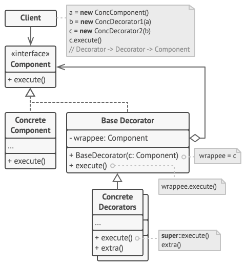 Component* decorator1 = new ConcreteDecoratorA(simple);