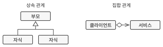 이러한 주의 사항을 극복하는 방법의 하나는 상속 대신 집합 관계 또는 합성을 사용하는 것입니다. 두 대안 모두 거의 같은 방식으로 작동합니다: 집합 관계에서는 한 객체가 다른 객체에 대한 참조를 갖고 일부 작업을 위임하는 반면, 상속을 사용하면 객체 자체가 부모 클래스에서 행동을 상속한 후 해당 작업을 수행할 수 있습니다.